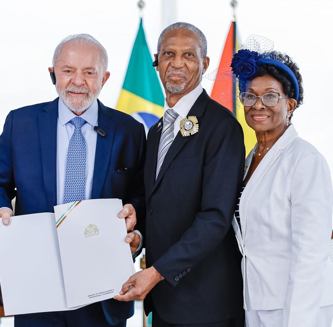 His Excellency Dr. Compton Bourne, Ambassador Extraordinary and Plenipotentiary of the Co-operative Republic of Guyana to Brazil on November 14, 2024, presented his Letters of Credence to His Excellency Luiz Inácio Lula DaSilva .