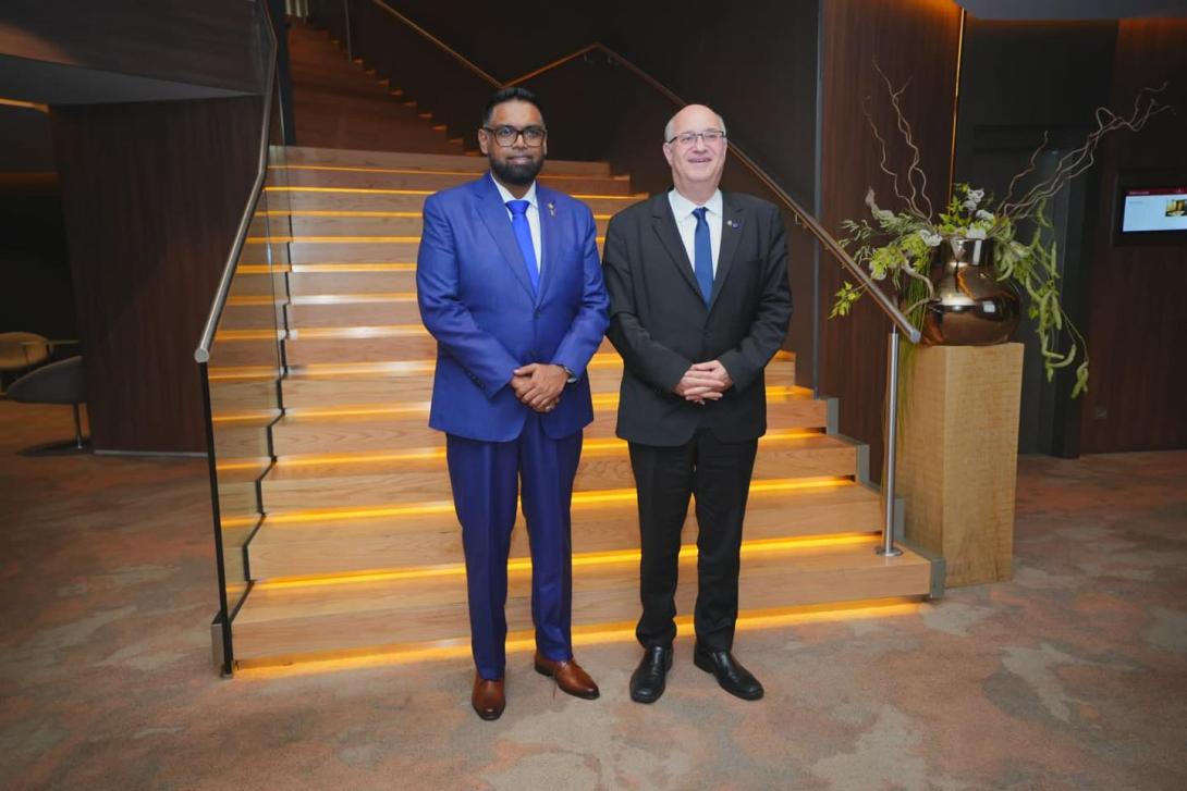 His Excellency President Dr Irfaan Ali met with the President of the Inter-American Development Bank (IDB), Ilan Goldfajn, on the sidelines of the European Union-Community of Latin American and Caribbean States (EU-CELAC) Summit 2023 in Brussels, Belgium.