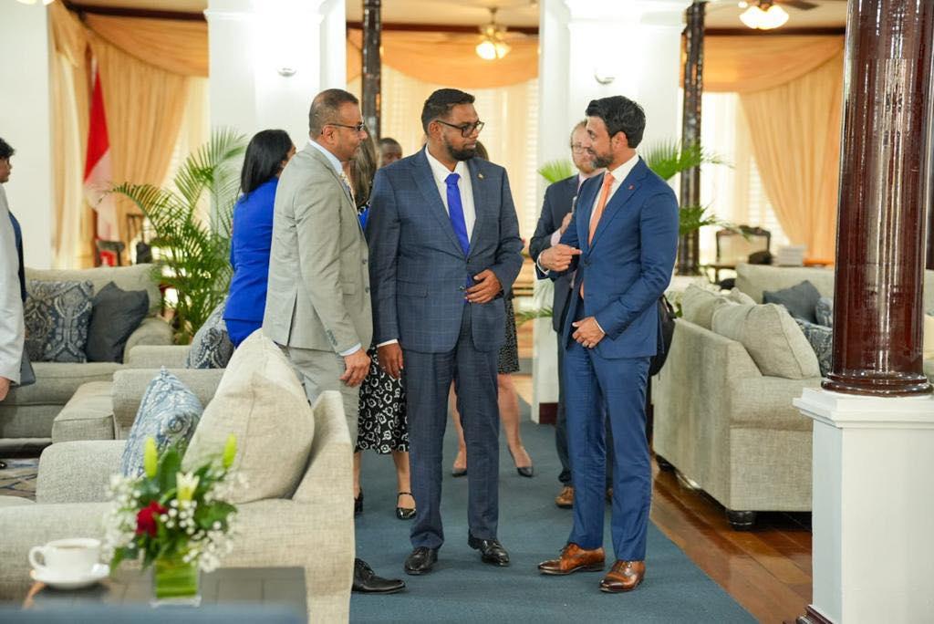 His Excellency President Dr Irfaan Ali received a courtesy visit from the Parliamentary Secretary to the Minister of Foreign Affairs of Canada, Mr Maninder Sidhu, this afternoon, at State House.