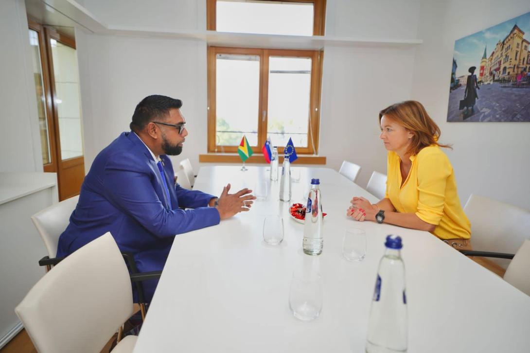 President Dr. Irfaan Ali held bilateral talks with Deputy Prime Minister and Minister of Foreign Affairs of Slovenia, Tanja Fajon, during the EU—CELAC event in Brussels, Belgium.