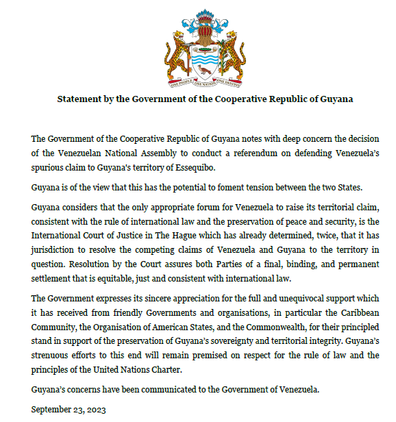 The Government of the Cooperative Republic of Guyana notes with deep concern the decision
