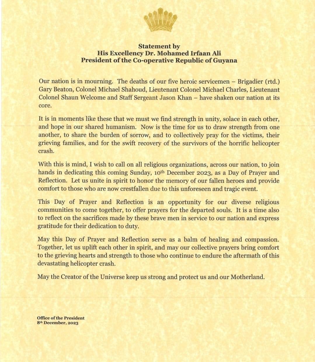 Statement by His Excellency Dr Mohamed Irfaan Ali, President of the Cooperative Republic of Guyana