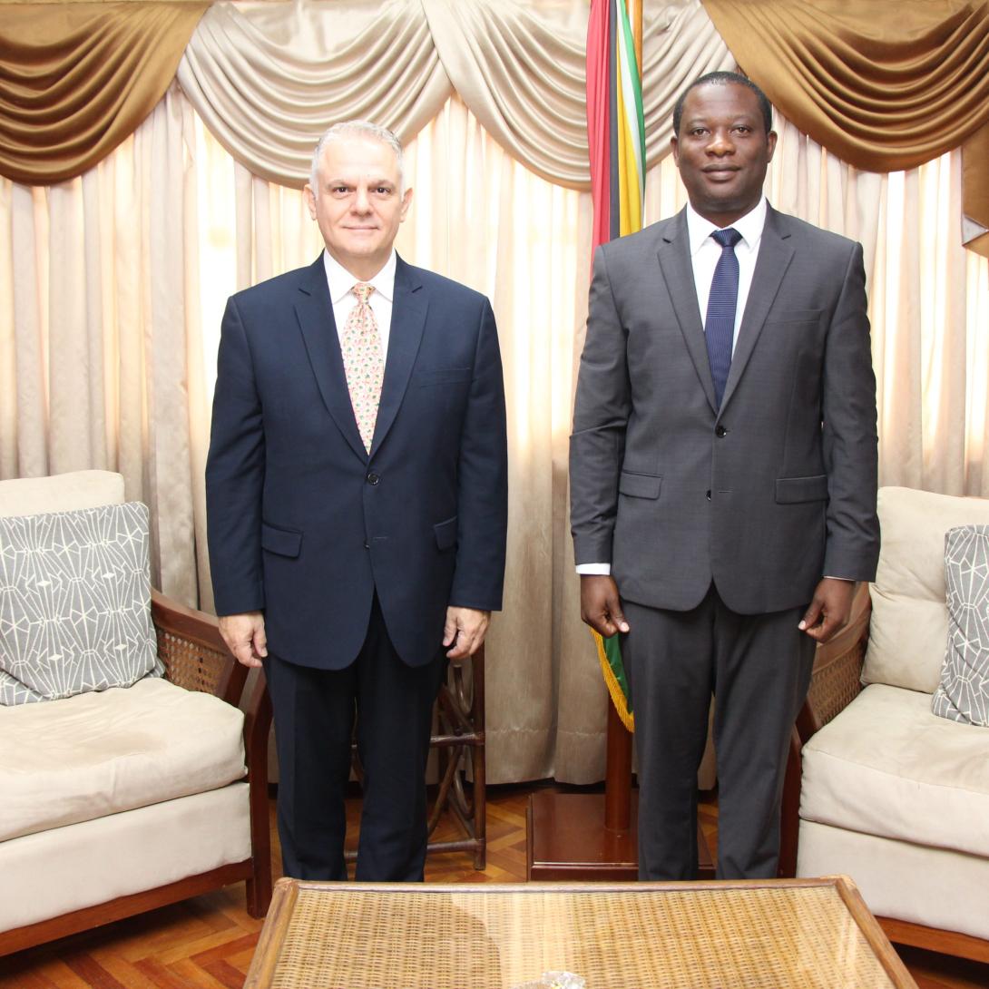 The Honourable Hugh Hilton Todd, Minister of Foreign Affairs and International Cooperation, today receieved a courtesy call from His Excellency Evagoras Vryonides, High Commissioner-designate of the the Republic of Cyprus to the Co-operative Republic of Guyana.