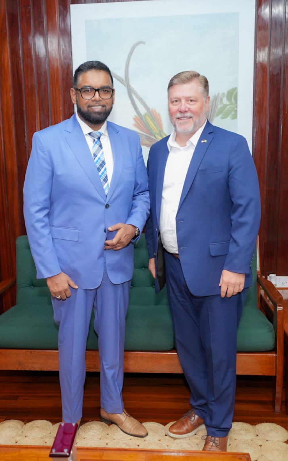 His Excellency President Dr Irfaan Ali received a courtesy visit from United States Congressman Richard Crawford at the Office of the President on Shiv Chanderpaul Drive today.