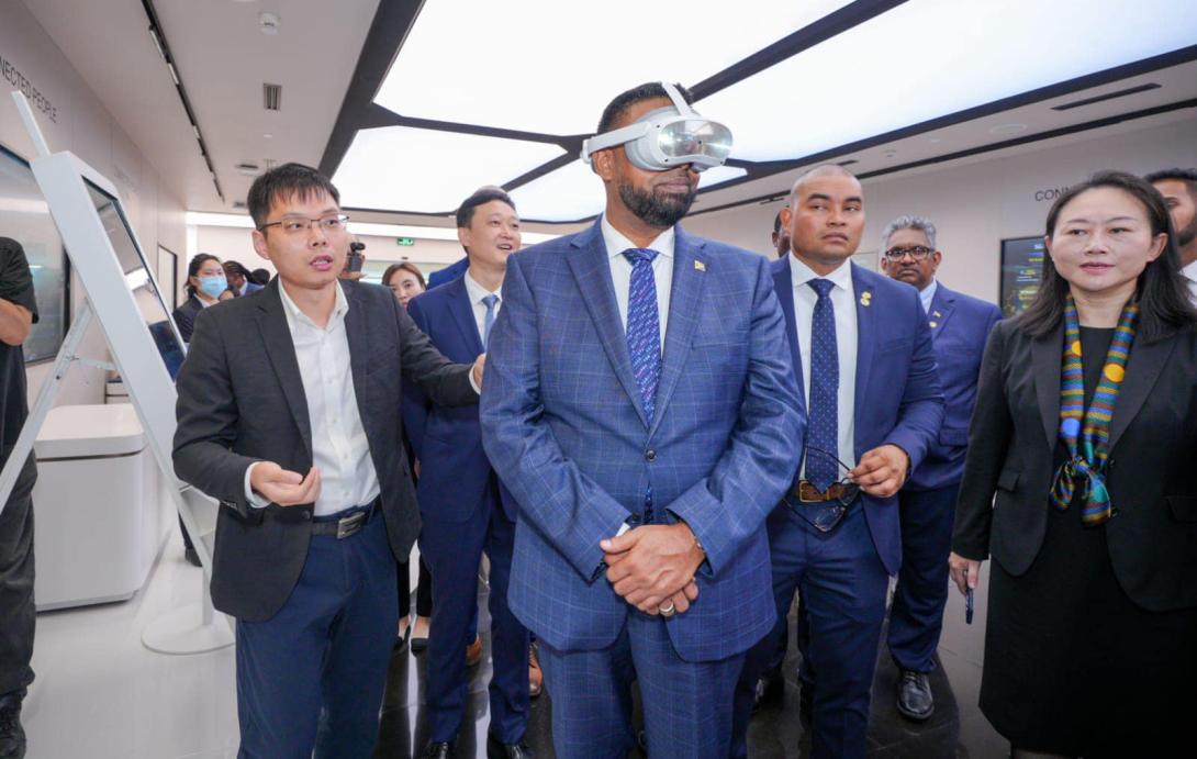 His Excellency President Dr Irfaan Ali, today, visited Huawei’s Shanghai Research Centre where he met with the company’s senior Vice President, Jeff Wang.