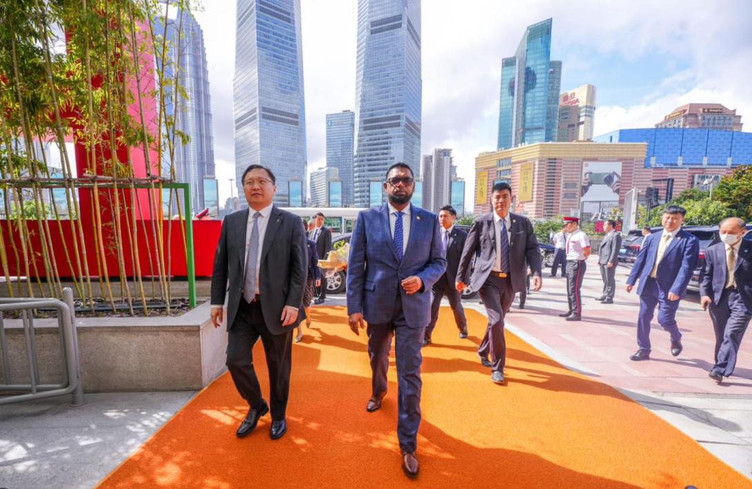 His Excellency President Dr Irfaan Ali visited the Oriental Pearl Radio & Television Tower in Shanghai.